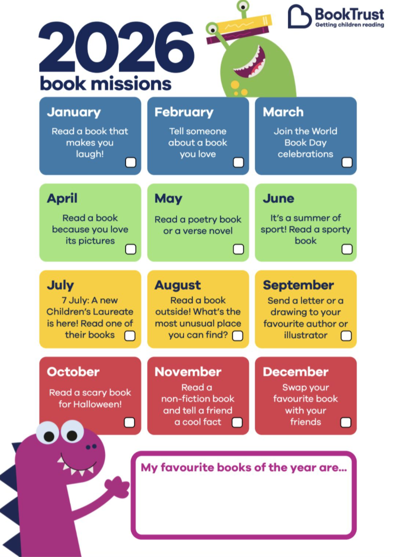 It looks like 2026 is going to be my absolute favourite year - any year that is a national year of reading can't be otherwise! There are already so many different enticing ways to encourage children to branch out and expand their reading repertoire. I particularly like this monthly book mission published by the Book Trust. The charity that is responsible for distributing free book packs to all babies and toddlers through their fantastic 'Book Start' programme.